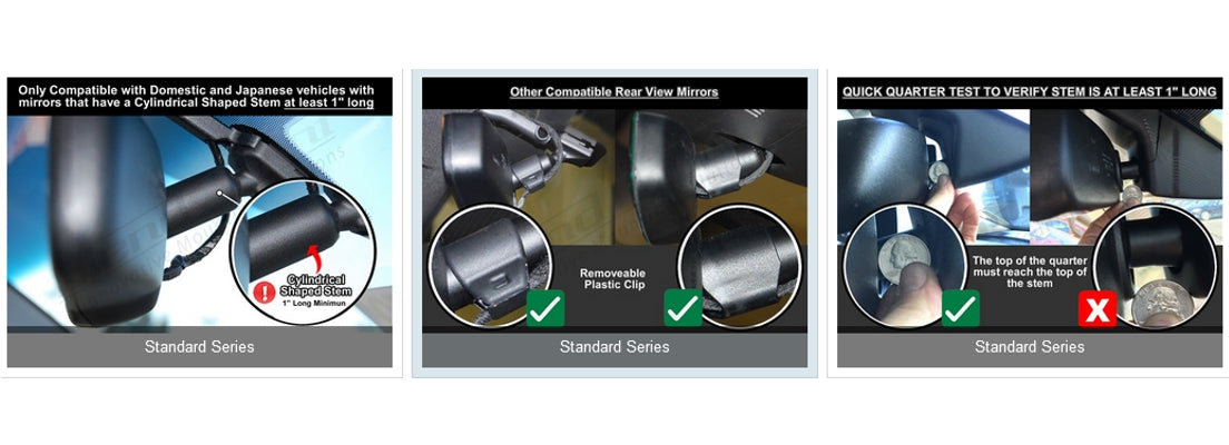 This BlendMount® BR7-2001R mount attaches securely to the rear-view mirror stem of select Acura, Buick, Cadillac, Chevrolet, Chrysler, Dodge, Fiat, Ford, Genesis, GMC, Honda, Hummer, Hyundai, Infiniti, Isuzu, Jeep, Kia, Land Rover, Lexus, Lincoln, Mazda, Mercury, Mitsubishi, Nissan, Oldsmobile, Panoz, Pontiac, Saturn, Scion, Subaru, Suzuki and Toyota models with manual or auto-dimming mirrors. See below for Vehicle Mirror ID.